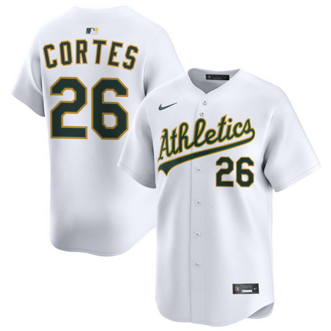 Home>MLB>Oakland Athletics>Men>Men Athletics Nike Home Limited Custom Jersey White Cortes Carlos 26
