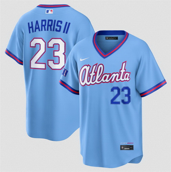 Home>MLB>Atlanta Braves>Men>Men Atlanta Braves Michael Harris II Powder Blue 2026 City Connect Stadium Stitched Baseball Jersey