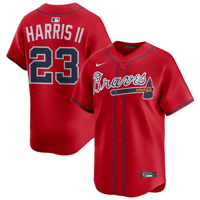 Men Atlanta Braves Nike Alternate Limited Jersey Red Harris II Michael 23