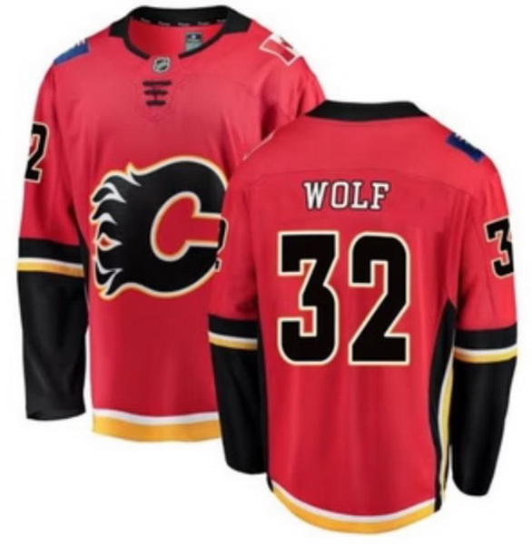 Men Calgary Flames Dustin Wolf #32 NHL Adidas Stitched Jersey Red Black