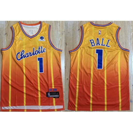 Home>NBA>Charlotte Hornets>Men>Men Charlotte Hornets 1 LaMelo Ball Orange 2025 26 City Edition Stitched Basketball Jersey