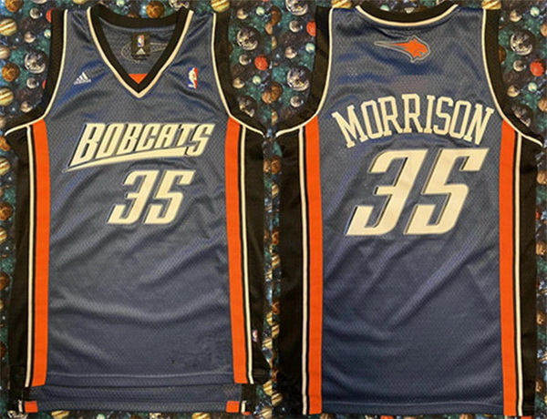 Home>NBA>Charlotte Hornets>Men>Men Charlotte Hornets 35 Adam Morrison Navy Stitched Basketball Jersey