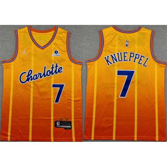 Home>NBA>Charlotte Hornets>Men>Men Charlotte Hornets 7 Kon Knueppel Orange 2025 26 City Edition Stitched Basketball Jersey