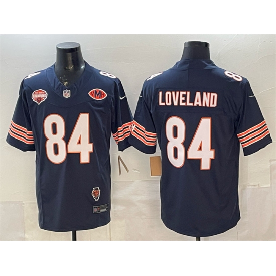 Home>NFL>Chicago Bears>Men>Men Chicago Bears 84 Colston Loveland Navy F U S E 2025 NFC North Champions 26 VMH Patch Vapor Untouchable Limited Stitched Football Jersey