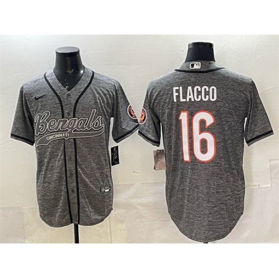 Men Cincinnati Bengals 16 Joe Flacco Grey With Patch Cool Base Stitched Baseball Jersey