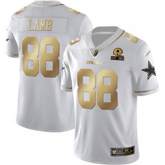 Home>NFL>Dallas Cowboys>Men>Men Dallas Cowboys 88 CeeDee Lamb White Gold With Established In 1960 Patch Vapor Limited Stitched Football Jersey