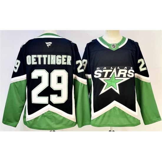Home>NHL>Anaheim Ducks>Men>Men Dallas Stars 29 Jake Oettinger Black 2025 26 Alternate Stitched Hockey Jersey