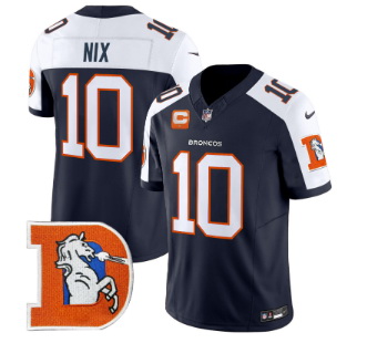 Men Denver Broncos 10 Bo Nix Navy Throwback Vapor Limited Navy Alternate Jersey