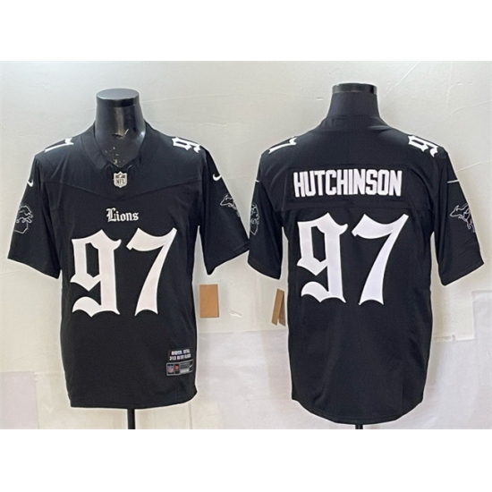 Home>NFL>Detroit Lions>Men>Men Detroit Lions 97 Aidan Hutchinson Black 2025 F U S E Gothic Motor Grit Edition Vapor Limited Stitched Football Jersey
