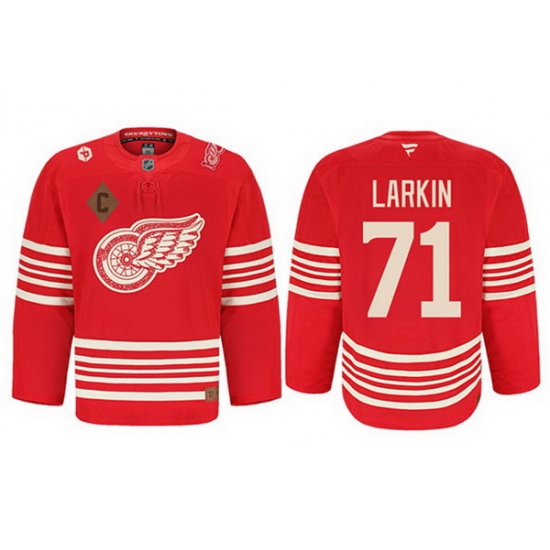 Home>NHL>Detroit Red Wings>Men>Men Detroit Red Wings 71 Dylan Larkin Red 2025 Centennial Premium With 100 and P Patch And C Patch Stitched Hockey Jersey