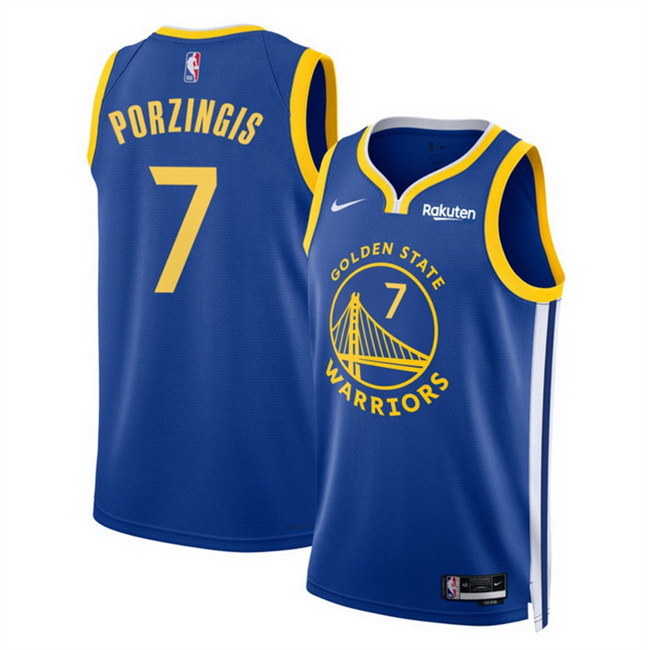 Men Golden State Warriors 7 Kristaps Porzingis Blue 2026 Icon Edition Stitched Basketball Jersey