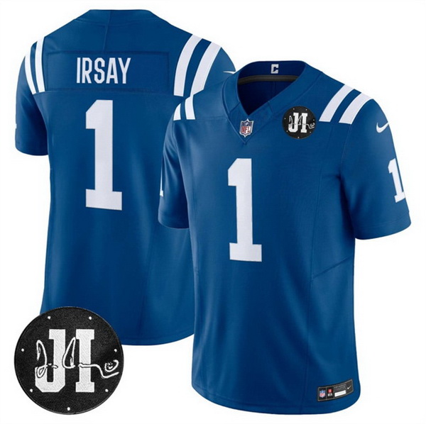 Home>NFL>Indianapolis Colts>Men>Men Indianapolis Colts 1 Jim Irsay Blue 2025 F U S E Jim Irsay Patch Vapor Limited Stitched Football Jersey