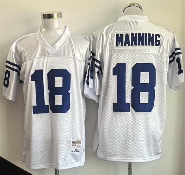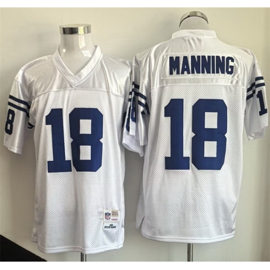 Men Indianapolis Colts 18 Peyton Manning White Throwback Stitched Football Jersey