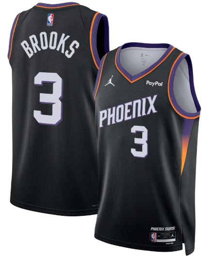 Home>NBA>Phoenix Suns>Men>Men Jordan Brand Black Phoenix Suns Dillon Brooks #3 Swingman Badge Jersey Statement Edition