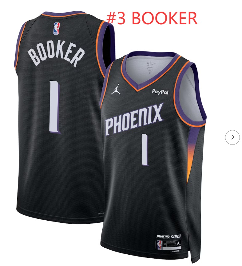 Home>NBA>Phoenix Suns>Men>Men Jordan Brand Devin Booker Black Phoenix Suns #3 Swingman Badge Jersey Statement Edition