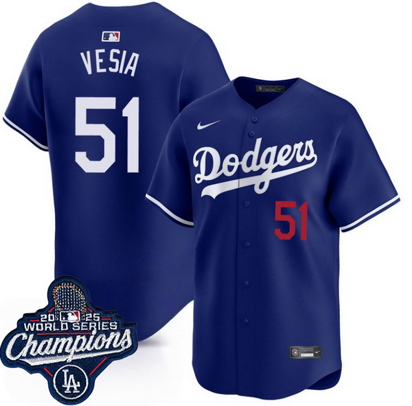 Home>MLB>Los Angeles Dodgers>Men>Men Los Angeles Dodgers Alex Vesia #51 Blue 2025 World Series Champions Limited Stitched Baseball Jersey