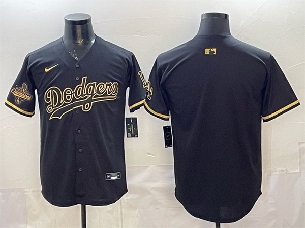 Men Los Angeles Dodgers Blank Black Gold 2025 World Series Champions Patch Limited Stitched Baseball Jersey