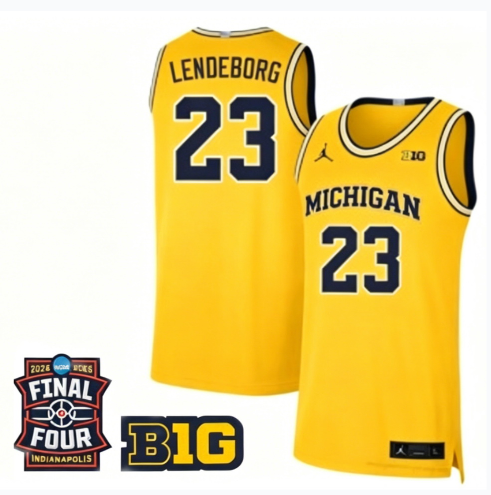 Home>NCAA>Michigan Wolverines>Men Michigan Wolverines Yaxel Lendeborg #23 Jordan Stitched Yellow Final FOUR Patch Jersey