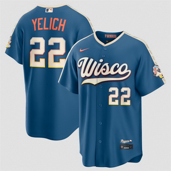 Home>MLB>Milwaukee Brewers>Men>Men Milwaukee Brewers 22 Christian Yelich Mineral Blue 2026 City Connect Stadium Stitched Baseball Jersey