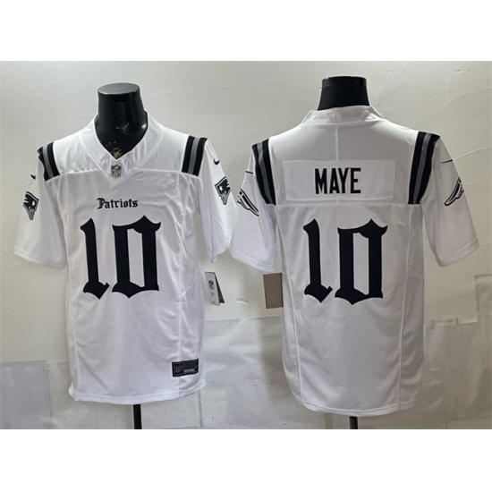 Home>NFL>New England Patriots>Men>Men New England Patriots 10 Drake Maye White F U S E Gothic Revolution Edition Stitched Football Jersey