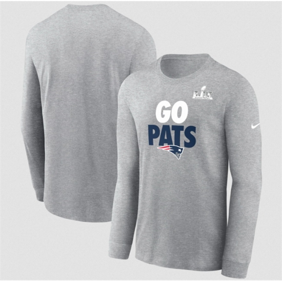 Home>NFL>2025 2026 Super Bowl LX>Super Bowl Hoodie T Shirts>Men New England Patriots Heather Gray 2025 Super Bowl LX Fast As Fast Gets Long Sleeve T Shirt