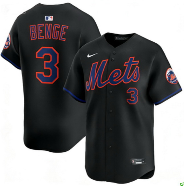 Home>MLB>New York Mets>Men>Men New York Mets Nike Carson Benge #3 Black Home Stitched Player Jersey