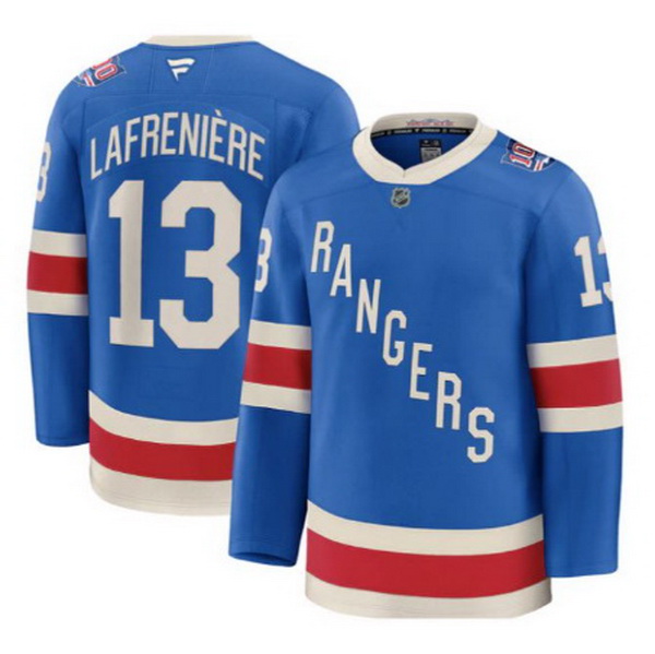 Home>NHL>New York Rangers>Men>Men New York Rangers 13 Alexis Lafreniere Blue Centennial Stitched Hockey Jersey