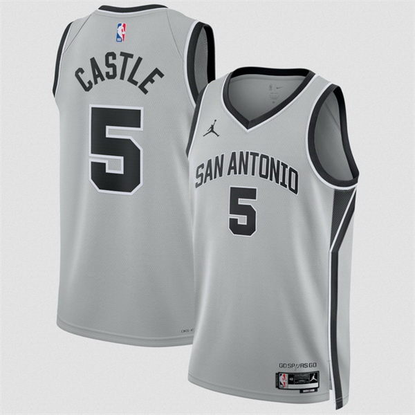 Home>NBA>San Antonio Spurs>Men>Men San Antonio Spurs 5 Stephon Castle Silver 2025 Statement Edition Stitched Basketball Jersey