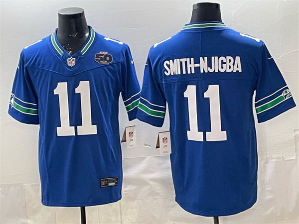 Home>NFL>Seattle Seahawks>Men>Men Seattle Seahawks 11 Jaxon Smith Njigba Royal 2025 F U S E 50th Season Patch Throwback Vapor Limited Stitched Football Jersey