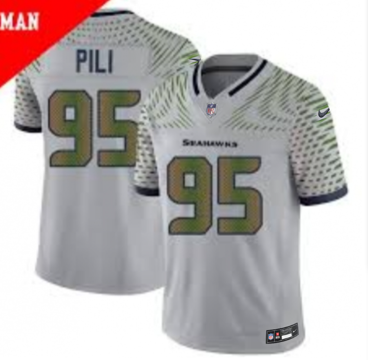 Home>NFL>Seattle Seahawks>Men>Men Seattle Seahawks Brandon Pili #95 Nike Wolf Gray 2025 Rivalries Limited Jerseys