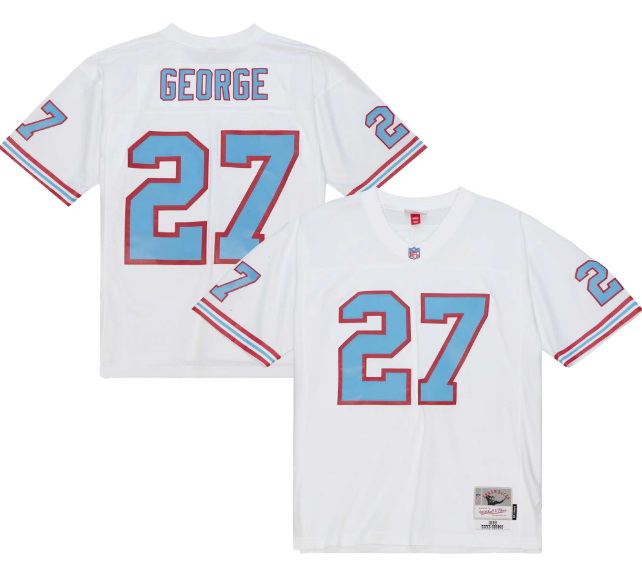 Men Tennessee Oilers 27 Eddie George White Throwback Stitched Jersey
