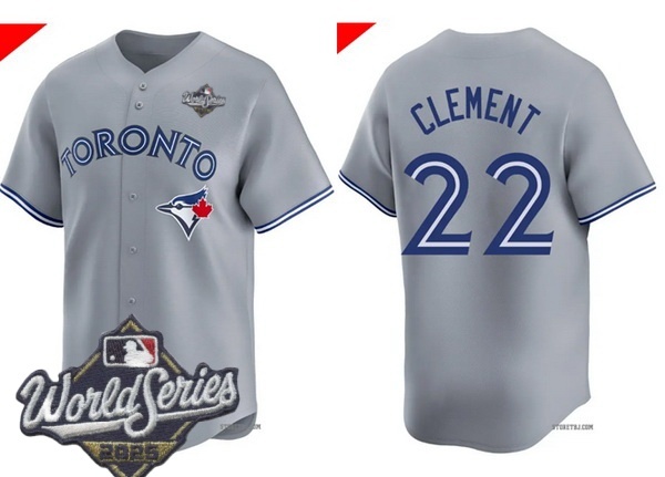 Home>MLB>2025 World Series>Toronto Blue Jays>Men Toronto Blue Jays 22 Ernie Clement Gray Cool Base Stitched Baseball Jersey
