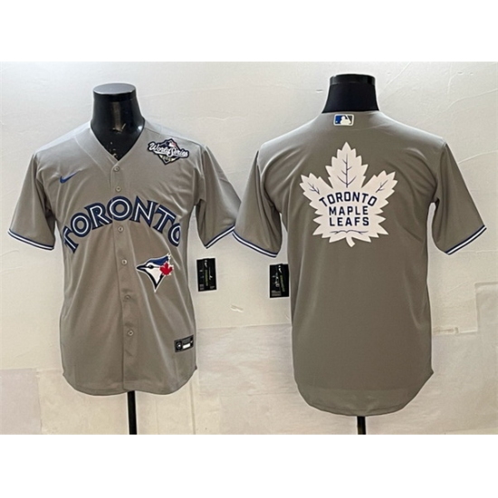 Men Toronto Blue Jays 26 Leafs Grey 2025 World Series With White Leafs Logo Cool Base Stitched Baseball Jersey