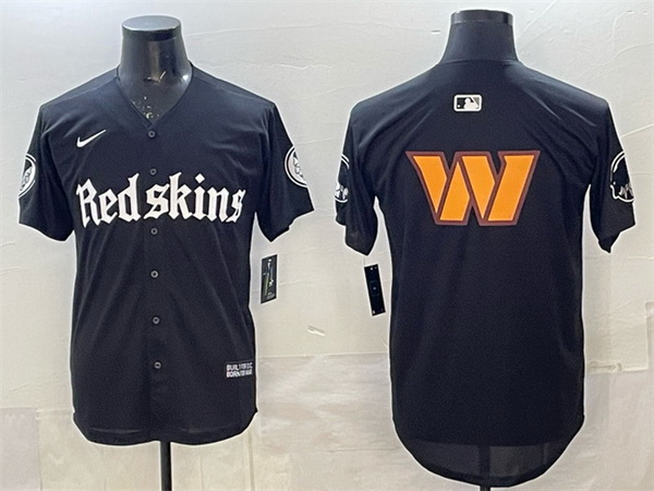 Home>NFL>Washington Commanders>Men>Men Washington Commanders Team Big Logo Black Gothic Capitol Shadows Edition Limited Stitched Baseball Jersey