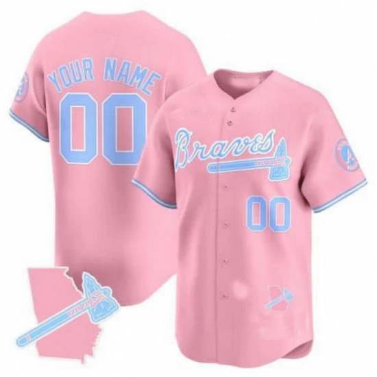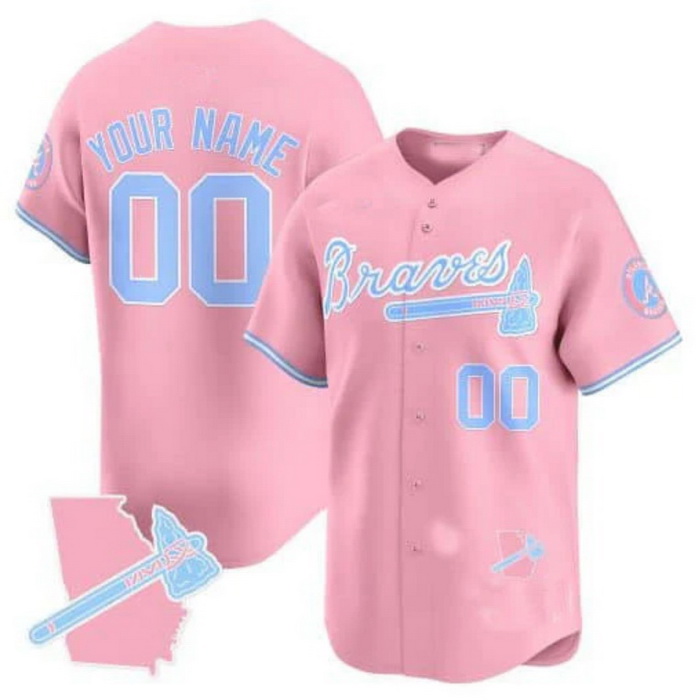 Men Women Youth Happy Paw Supply Custom Atlanta Braves Bubblegum Pink Vapor Premier Limited Jersey