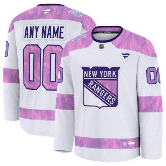 Men Women Youth New York Rangers Fanatics 2024 Hockey Fights Cancer Custom Practice Jersey White