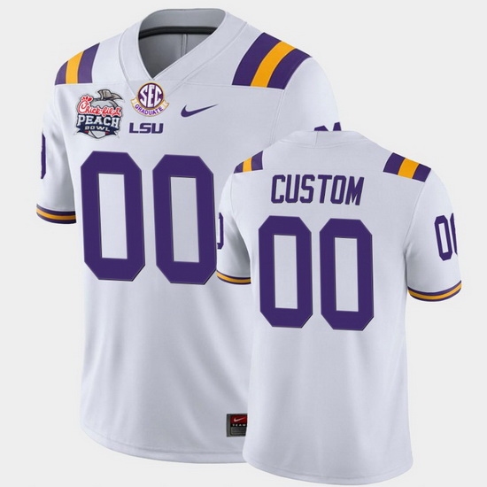 Men Women Youth Toddler Lsu Tigers Custom College Football White Peach Bowl Champions Home Jersey