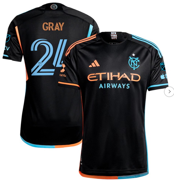 Home>Soccer>MLS Soccer Jerseys>New York City FC>Men's New York City FC Tayvon Gray adidas Black 2024 24 7 Kit Authentic Player Jersey