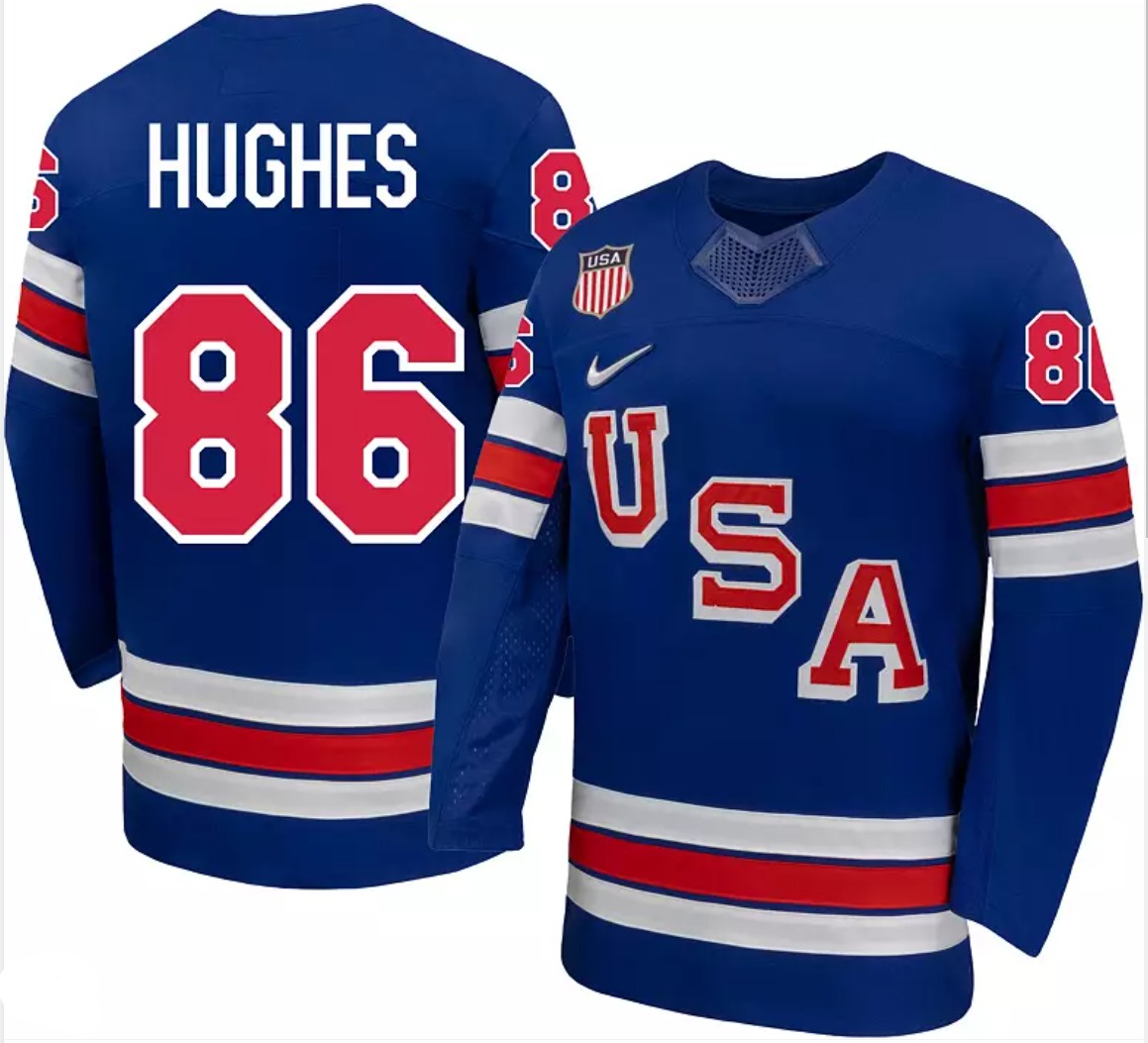 Men's USA #86 Jack Hughes Blue 2026 Stitched Hockey Jersey