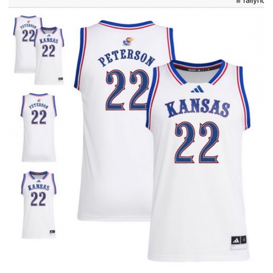 Home>NCAA>Kansas Jayhawks>NCAA Kansas #22 Peterson Basketball White Jersey