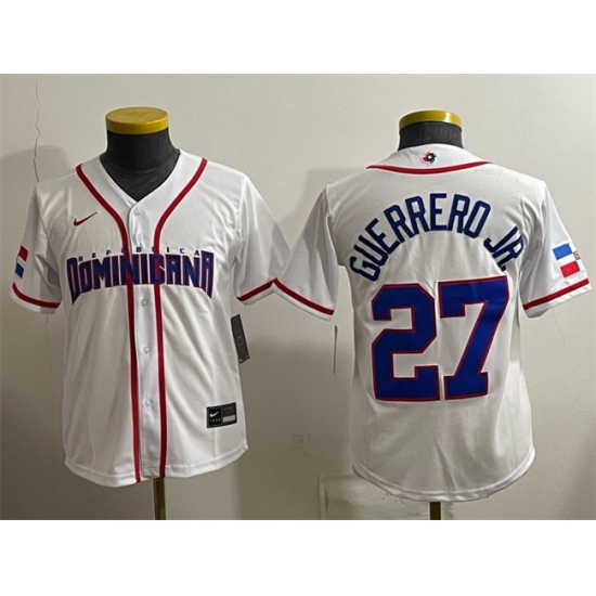 Home>MLB>2026 World Baseball>Dominican Republic>Women Dominican Republic Baseball 27 Vladimir Guerrero Jr White 2026 World Baseball Classic Home Stadium Stitched Baseball Jersey Run Small