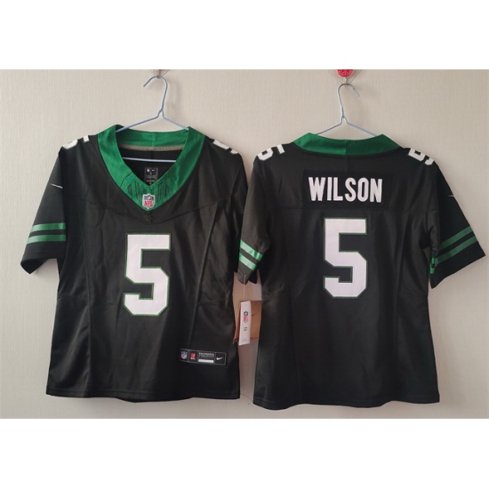 Women New York Jets 5 Garrett Wilson Black F U S E Vapor Stitched Jersey