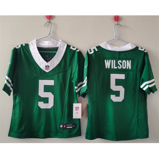 Women New York Jets 5 Garrett Wilson Green F U S E Vapor Stitched Jersey