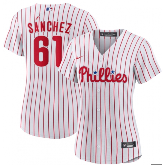 Women Nike Cristopher Sanchez White #61 Philadelphia Phillies Home Jersey