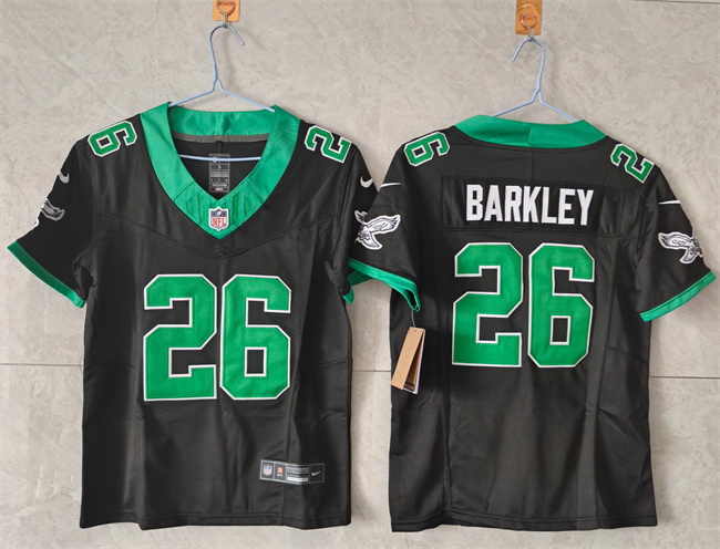 Home>NFL>Philadelphia Eagles>Women>Women Philadelphia Eagles 26 Saquon Barkley Black Throwback F U S E Vapor Untouchable Limited Stitched Football Jersey
