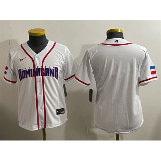 Youth Dominican Republic Baseball Blank White 2026 World Baseball Classic Home Stadium Stitched Baseball Jersey