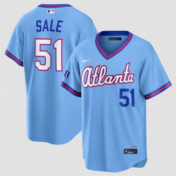 Home>MLB>Atlanta Braves>Men>Men Atlanta Braves 51 Chris Sale Powder Blue 2026 City Connect Stadium Stitched Baseball Jersey