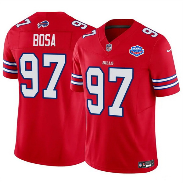 Home>NFL>Buffalo Bills>Men>Men Buffalo Bills 97 Joey Bosa Red 2025 F U S E With Farewell Patch Vapor Untouchable Limited Stitched Football Jersey