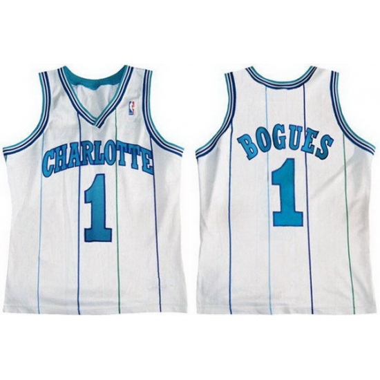 Men Charlotte Hornets 1 Muggsy Bogues White Stitched Basketball Jersey