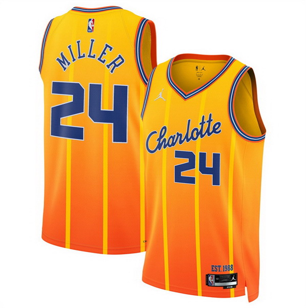 Home>NBA>Charlotte Hornets>Men>Men Charlotte Hornets 24 Brandon Miller Orange 2025 26 City Edition Stitched Basketball Jersey